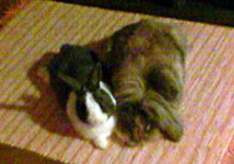 infine sono dovuta rientrare al lavoro... al rientro non riuscivo a trovare i topastri, ho guardato sotto il letto e li ho trovati uno di fronte all'altra coi musetti incollati! ho provato una felicità immensa!!! Da quel giorno i topastri fanno vita di coppia, si cercano si danno i bacini si sdraiano vicini e mangiano insieme!! Io sono così felice di vederli felici, con un solo gesto li ho migliorato la loro vita ed ho aiutato l'associazione.. Ringrazio tanto la Collina dei Conigli che mi ha dato questa possibilità!!!